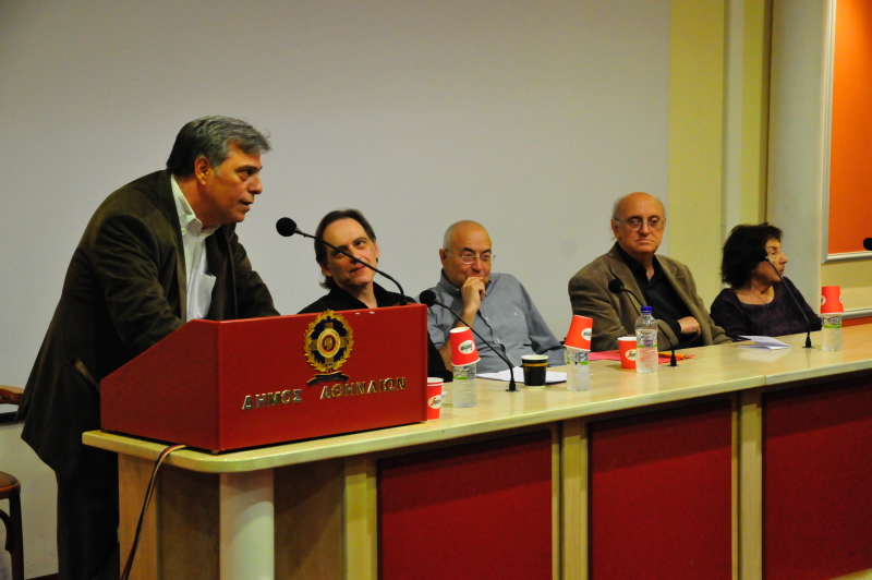 στο πάνελ της αφιερωματικής εκδήλωσης για τον Γιάννη Μαρή στο Πνευματικό Κέντρο του Δήμου Αθηναίων στις 8 Απριλίου 2011.